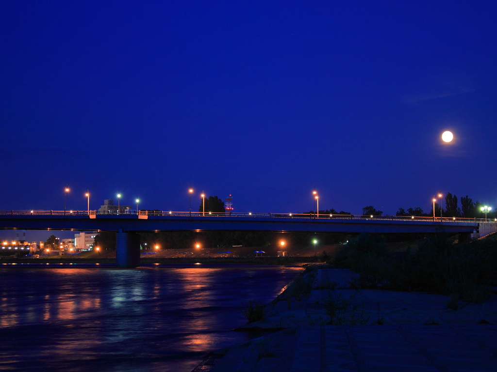 石狩川の河川敷で撮った写真です。 旭川市は、札幌市に次ぐ北海道第2の都市ですが、近くに大きい山がないため町を見下ろす場所に恵まれません。 盆地なので夏暑く冬寒いということです。有名な旭山動物園は、旭川駅からバスで20分ほどの所にあります。