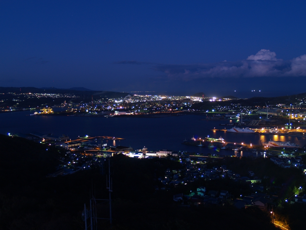 東室蘭駅の近くにある小高い丘、知利別公園というそうですが以前から気になっていたので行ってみました。登ってみると、街中の方角に向いた場所が 立ち入り禁止になっていましたが、付近を歩くと夜景の見える場所が数カ所ありました。下段真ん中の写真、中央奥に見える 山が測量山。鉄塔のライトアップがかろうじて見えます。