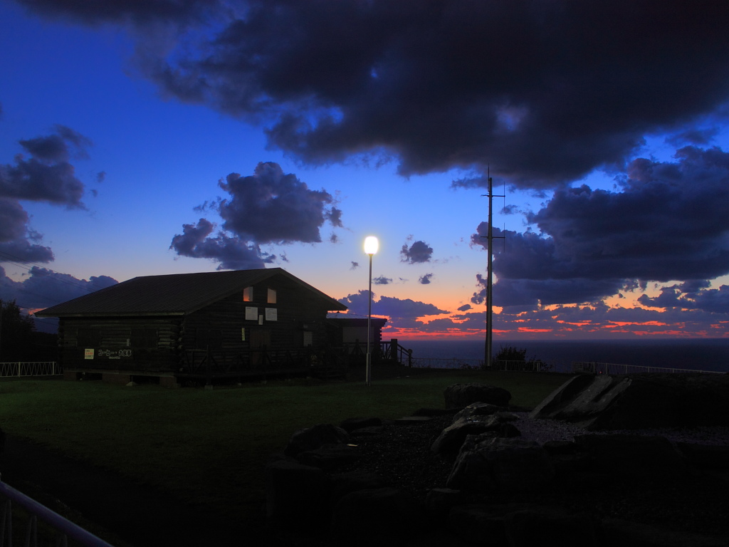 留萌は日本海側に面した小さな町です。この辺りの海岸線はオロロンラインと言われています。この日は 真っ赤な夕焼けにはなりませんでしたが、予報通り天気は回復して海に落ちていく夕陽が見えました。 写真は、千望台という高台からの眺めです。