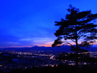 しかし日が暮れると山の上はさすがに寒くなりました。岩山公園から見る盛岡市街は西向きなので