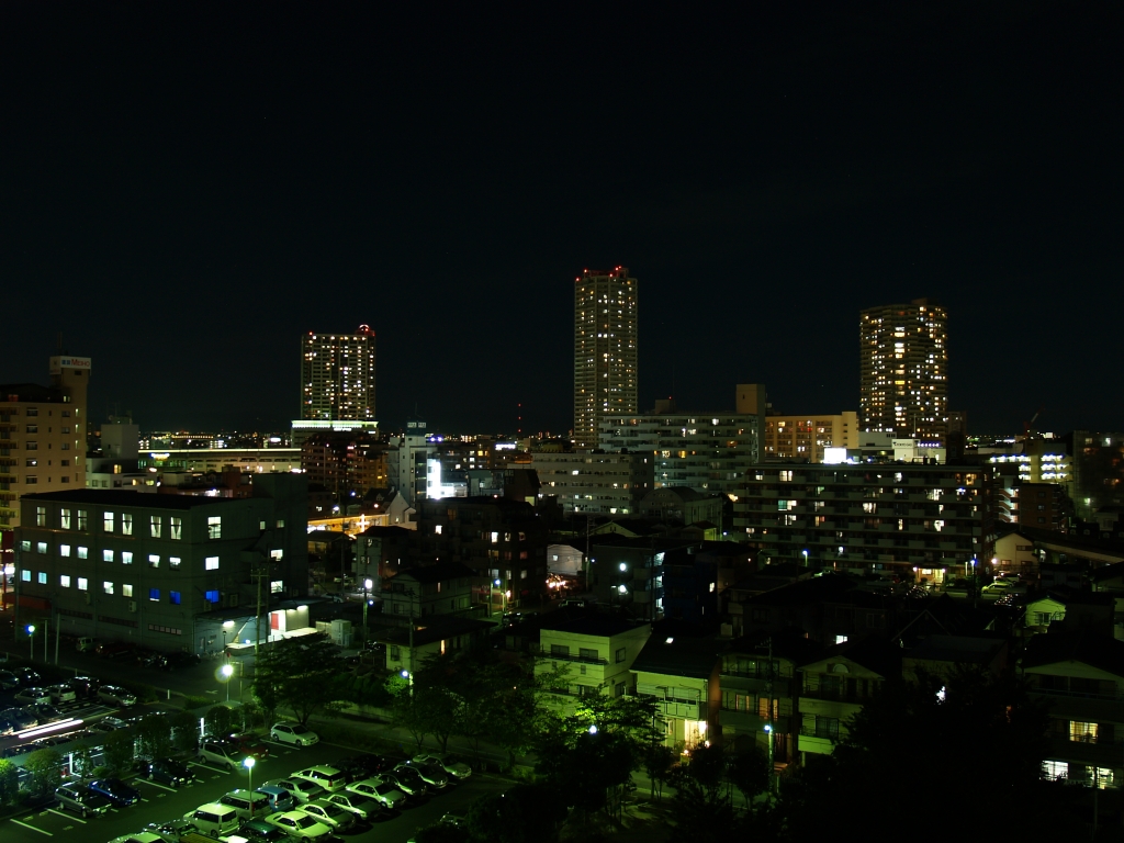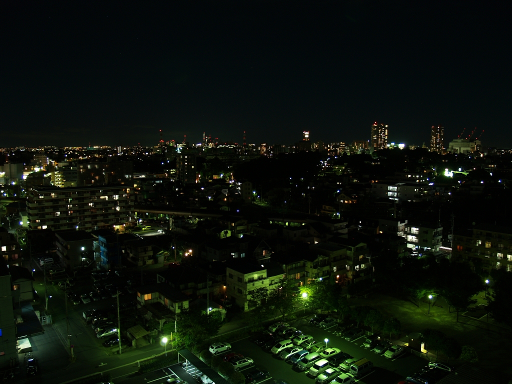 中程に見える高架線路は武蔵野線です。中央奥の方の明かりはさいたま新都心です。新都心ができて