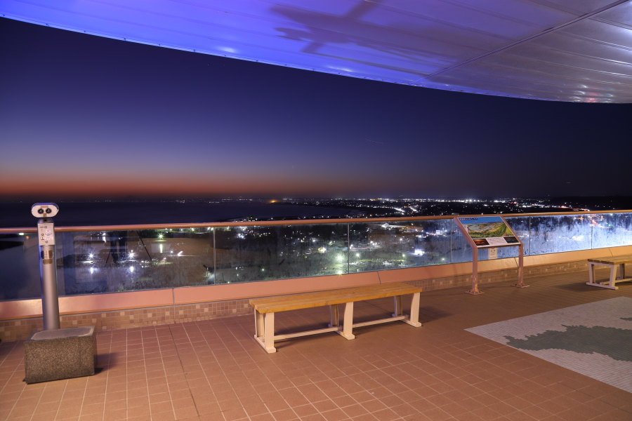 千葉県の北東部に位置します。小高い丘の上に展望台があります。日が落ちるとかすかに富士山のシルエットが 浮かび上がりました。見晴らしが良くまた来たいですが、場所が遠いのが残念です。