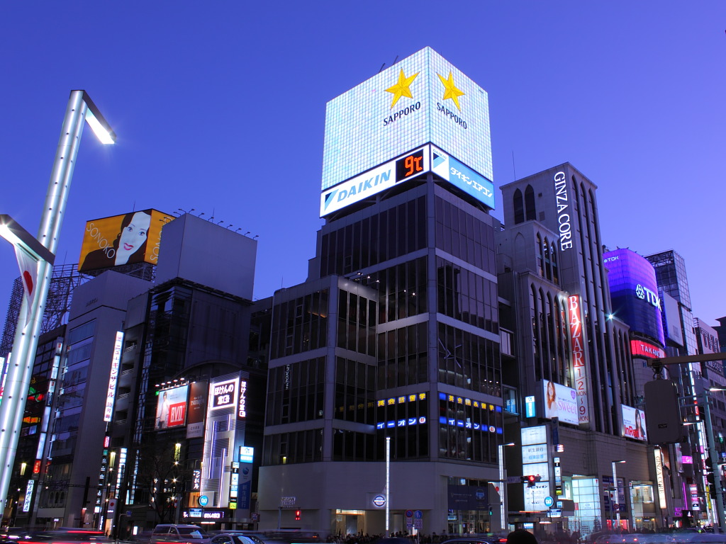 銀座四丁目で再度撮影しました。前回から約10年が経過し、日産のビルが建て替わっていました。通過する 車ができるだけ写真に入らないよう、信号機のタイミングをみて撮影しました。前回よりレンズが広角 なので、広い範囲が写っています。