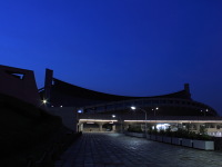 全然夜景スポットではないので、人気まばらでした。夕焼けをバックに建物の曲線美を狙いましたが、 なかなか思うような角度から撮れませんでした。