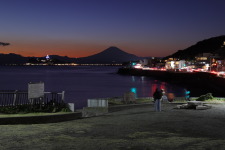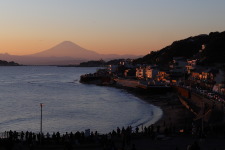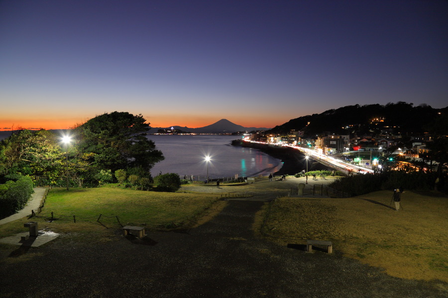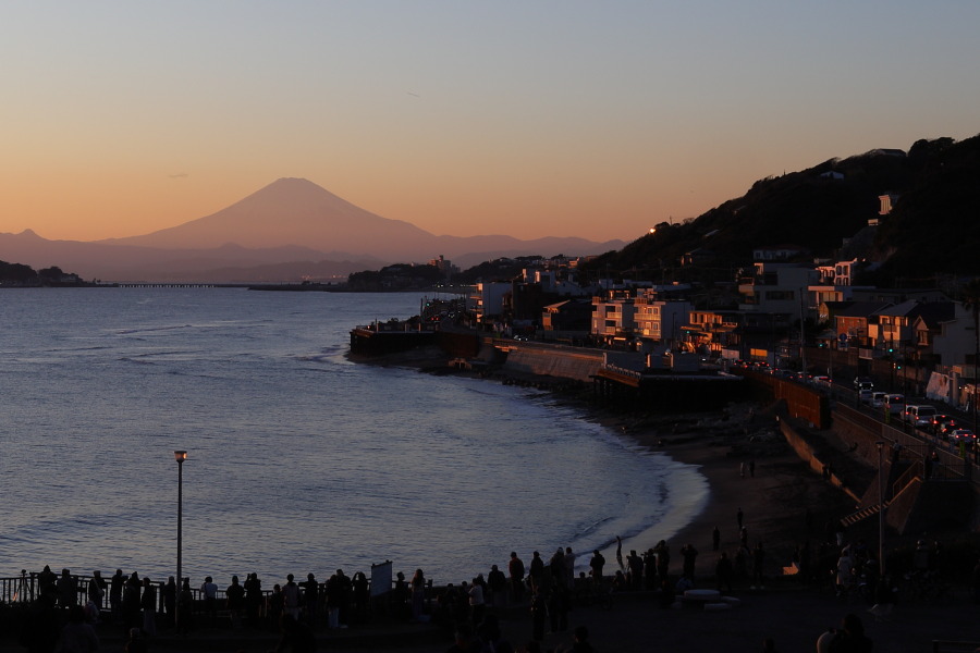 富士山を望む有名なスポット、稲村ケ崎です。この日は朝から富士山が良く見えて、夕方まで雲に遮られることがありませんでした。沢山の人手でしたが、撮影を終えることには人まばらになっていました。