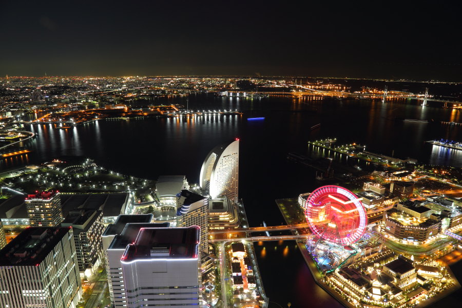 醸し出しています。右奥に横浜ベイブリッジ、左の果てにはかろうじて東京タワーとスカイツリーが写っています。