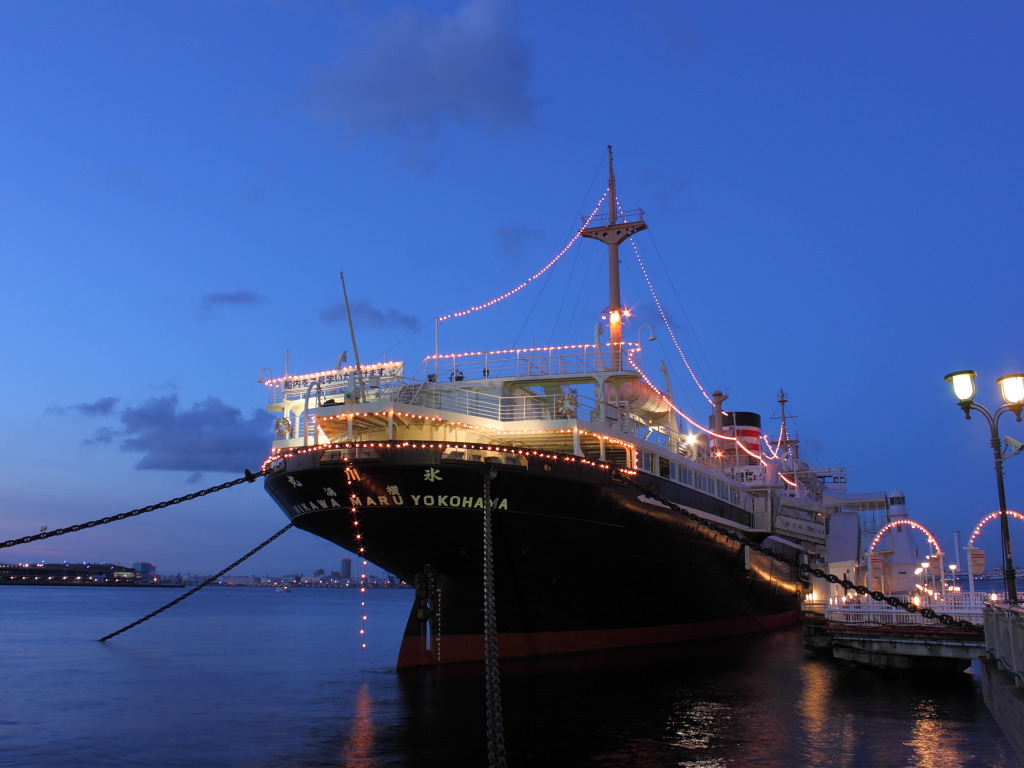 山下公園の一番はじっこの写真です。空が暗くなってくると、明るい照明によるゴーストが 出るのがつらいところ。横浜と神戸は何かと比較されますが、横浜のマリンタワーと神戸の ポートタワーを比べると、ポートタワーの方が外観は芸術性があると感じます。