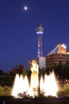 特にあてもなくみなとみらい地区に行きました。現地で久しぶりに横浜三塔を撮ろうとしたところ、東側から雲が拡がり 空の色が悪くなったため、西向きに撮れる被写体を探しました。マリンタワーはライトアップの照明が点いたり消えたり、 色も青・赤・黄色と目まぐるしく変わっていました。満月より前の明るい月が出ていました。その月も撮影30分後には 雲に隠れました。