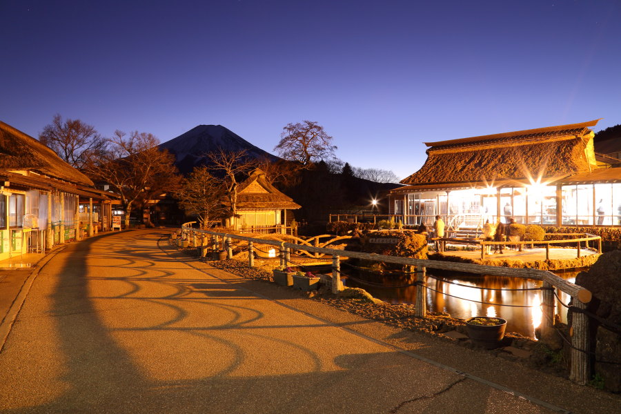 忍野村(おしのむら)は富士山の北東、山中湖の近くにあります。日が暮れるまでは沢山の観光客で賑わっていました。半分以上は外国人のようでした。 晴れの天気が続き、富士山の冠雪は減りつつありました。写真は全て同じ場所です。池が点在する中で、ここが一番見栄えの良い場所のようでした。富士山の手前の木が景観上 少し邪魔です。
