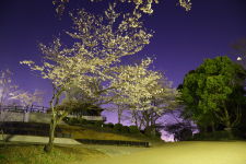 岩本山公園の桜です。満開より少し前のようでした。昼間の下見なしで行ったため、暗闇の中で 咲いている桜を探し、構図も決めました。月の明るい日だったので富士山も撮ってみましたが、 空気の透明度が低くぼんやりとしか写りませんでした。