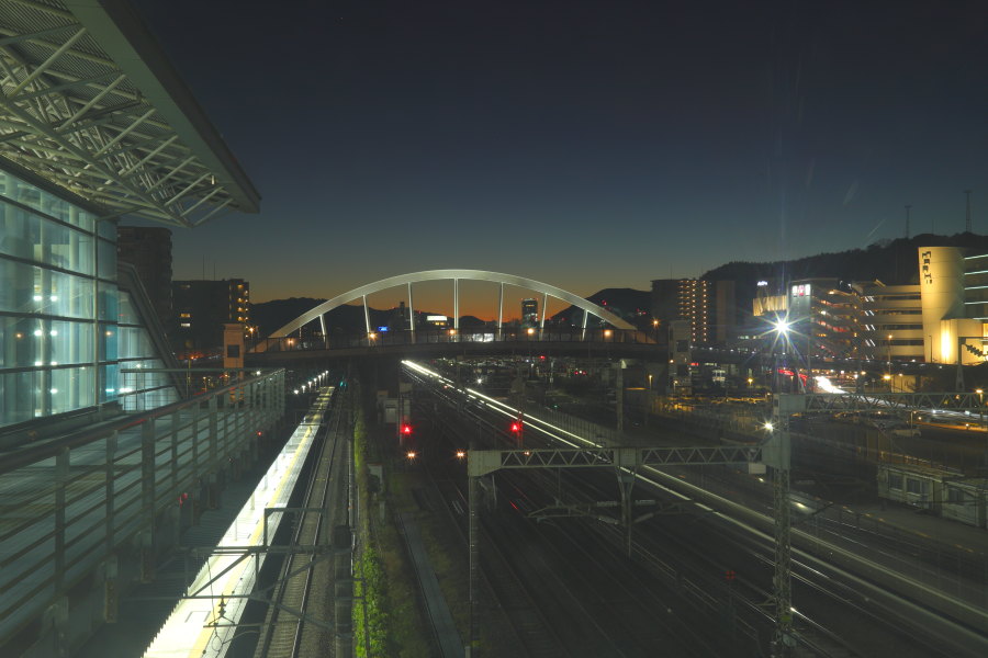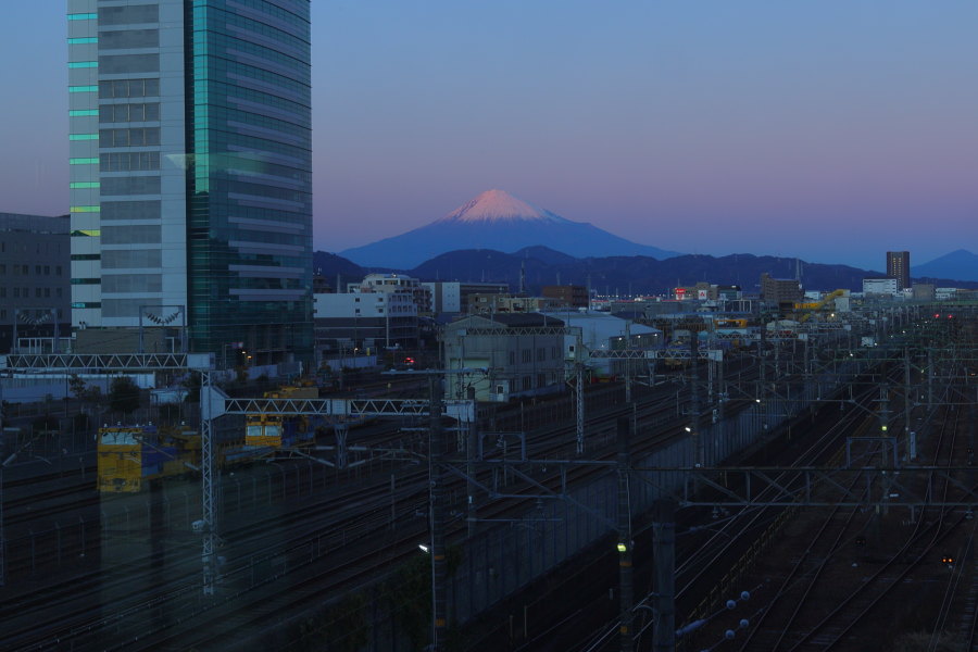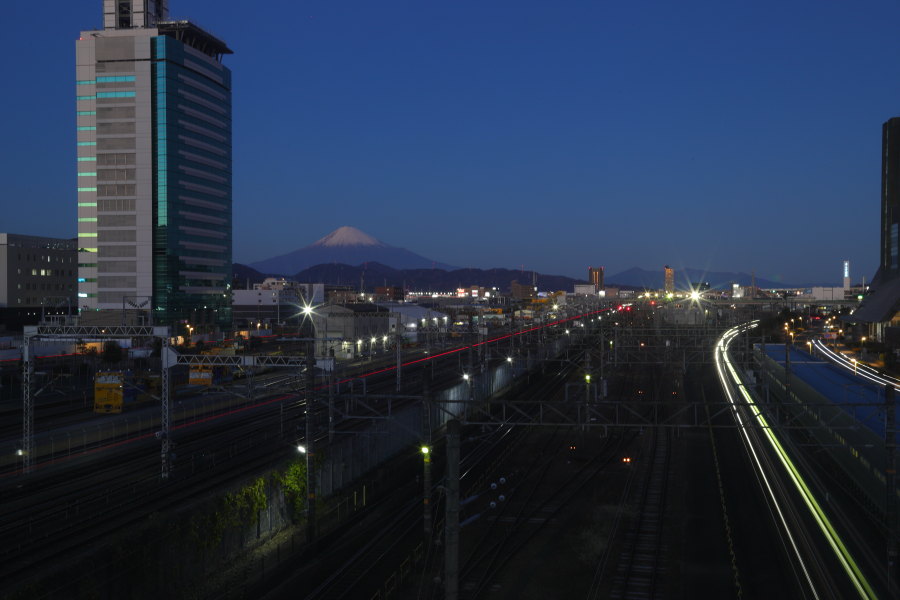 JR静岡駅から1駅、東静岡駅の改札を出ると南北を結ぶ歩道用の跨線橋があります。ガラス張りになっています。下を新幹線や在来線の電車が通過します。新幹線が通過する時は床が上下に揺れました。富士山の冠雪が良い感じです。