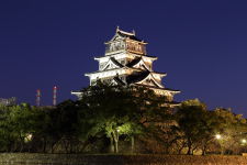 広島城は周囲を広いお堀に囲まれています。天守閣はそれほど大きくありません。できるだけ周囲の建物を避けるように写真を撮りました。