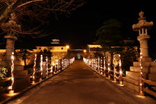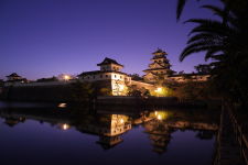 同じような写真が多くなって、どのアングルがお好きですか?という感じですが・・・。城の周囲は360度 お濠で囲まれています。外からは北西の方角から天守閣が良く見えます。ライトアップ開始は日没30分後と きいていました。空が真っ暗になる前に点灯するか心配でしたが、十分にトワイライトタイムに間に合いました。 左下の写真のみお濠の内側、他はお濠の外から撮っています。