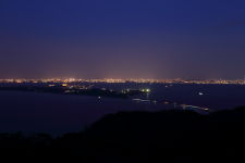しかのしまと読みます。見晴台の展望台からの写真です。福岡市中心部を北西から見ています。今は車で行けますが、 元々は離島だったのではないでしょうか。町あかりは遠いので夜景としての迫力はありませんが、良い景色です。 真ん中の写真、福岡ドームと福岡タワーが写っています。3月も暖かい日だったので遠くは霞んでいます。冬場に 来るつもりでしたが期を逃してしまいました。日の出を拝むのに良さそうな場所です。