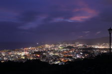 沖縄県で初めての夜景撮影です。左の写真は撮影場所。道路がカーブした所にある東屋の辺りで写真を撮りました。 町明かりが多く海が見えて好みのロケーションです。西の方角のみ見えます。冬の晴れた日に来れば、良い写真ができると思います。